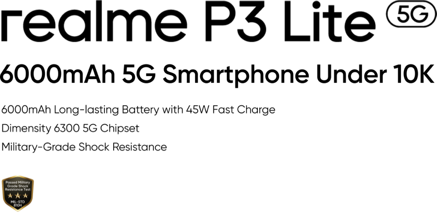 realme P3 Lite 5G has advanced ArmorShell™ Tough Build and passed the Military-Grade Shock Resistance Test. It stays strong and can withstand life’s toughest moments.⁸